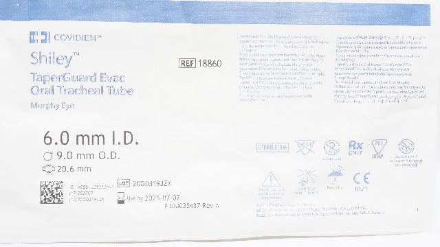 - Covidien 18860 Shiley TaperGuard Evac Oral Tracheal Tube 6.0IDx9.0ODx20.6mm (x)