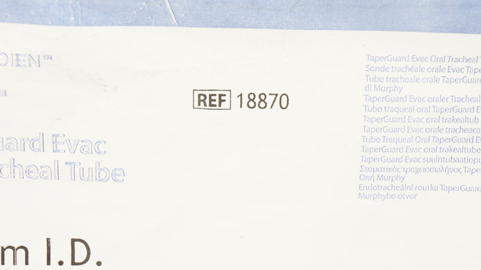 - Covidien 18870 Shiley TaperGuard Evac Oral Tracheal Tube 7.0ID x 10.4OD x 25.4mm