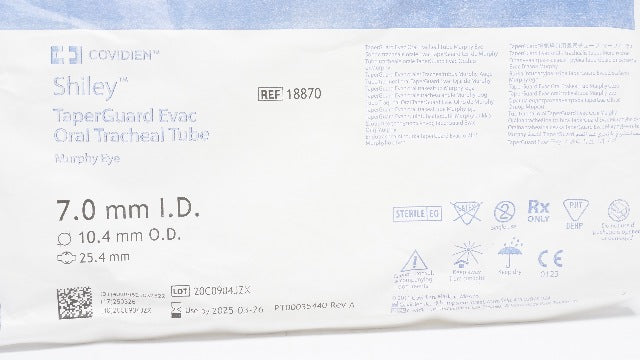 - Covidien 18870 Shiley TaperGuard Oral Tracheal Tube 7.0ID x 10.4OD x 25.4mm (x)