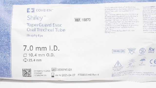 - Covidien 18870 Shiley TaperGuard Oral Tracheal Tube 7.0ID x 10.4OD x 25.4mm (x)