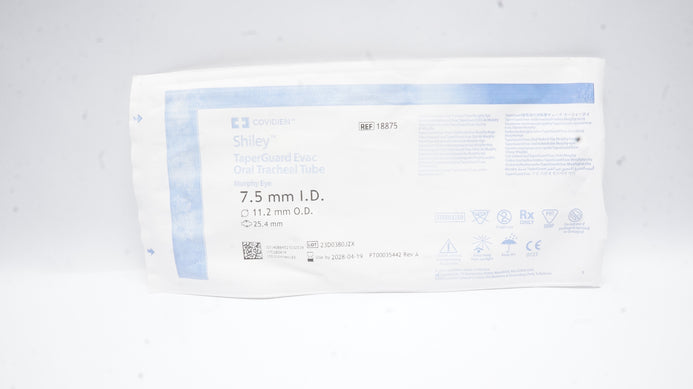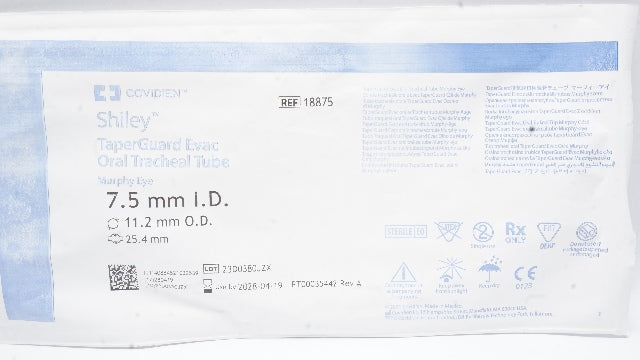 - Covidien 18875 Shiley TaperGuard Oral Tracheal Tube 7.5mmID x 11.2mmOD x 25.4mm