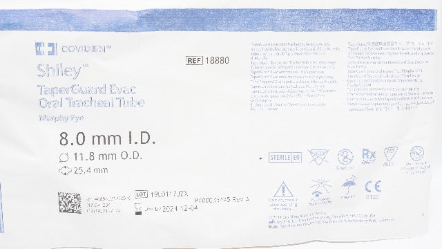 - Covidien 18880 Shiley TaperGuard Oral Tracheal Tube 8.0ID x 11.8OD x 25.4mm(x)