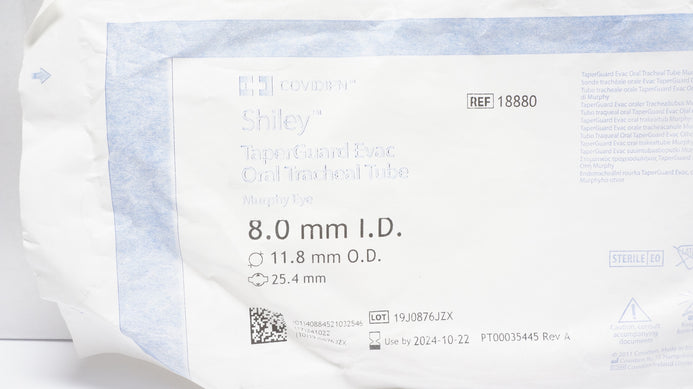 - Covidien 18880 Shiley TaperGuard Oral Tracheal Tube 8.0ID x 11.8OD x 25.4mm(x)