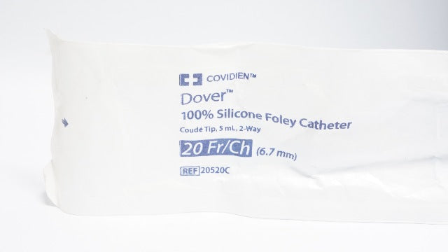 - Covidien 20520C Dover 100% Silicone Foley Cath. 2-Way, Coude Tip, 5mL, 20Fr (x)