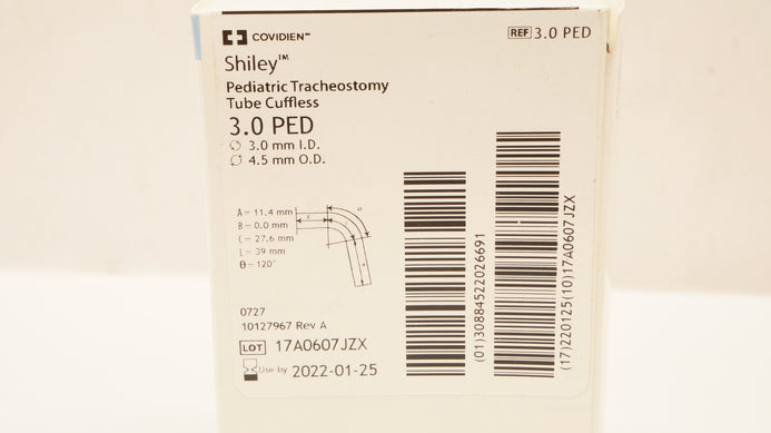 - Covidien 3.0PED Shiley Pediatric Tracheostomy Tube Cuffless 3.0ID x 4.5mm OD(x)