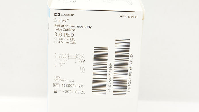 - Covidien 3.0PED Shiley Pediatric Tracheostomy Tube Cuffless 3.0mm x 4.5mm (x)