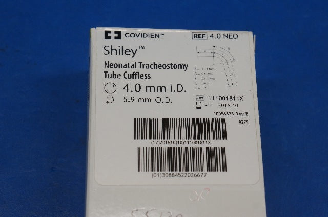 - Covidien 4.0NEO Shiley Neonatal Tracheostomy Tube Cuffless 4.0mm x 5.9mm (x)