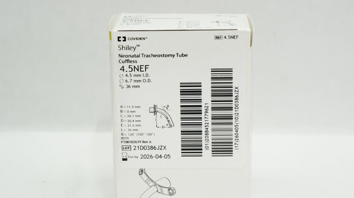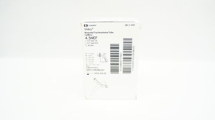 - Covidien 4.5NEF Shiley Neonatal Tracheostomy Tube 4.5mm ID x 6.7mm OD x 36mm