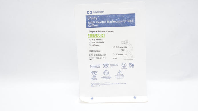 - Covidien 4UN65H Shiley Adult Flexible Tracheostomy Tube Cuffless 6.5ID x 9.4mmOD