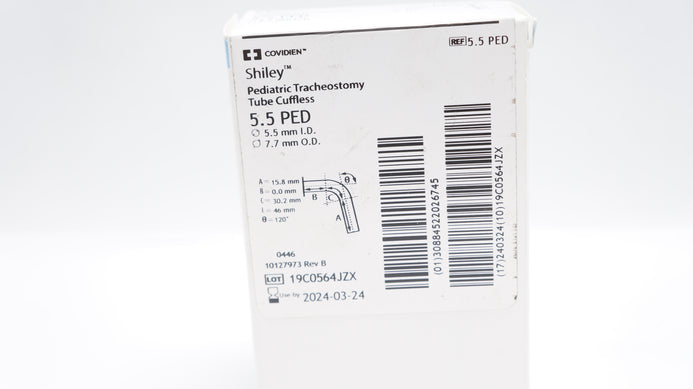 - Covidien 5.5PED Shiley Pediatric Tracheostomy Tube Cuffless 5.5mm x 7.7mm (x)
