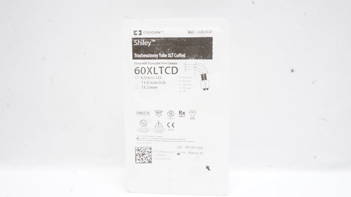 - Covidien 60XLTCD Shiley Tracheostomy Tube XLT Cuffed 6.0 ID x 11.0 OD x 31.3mm