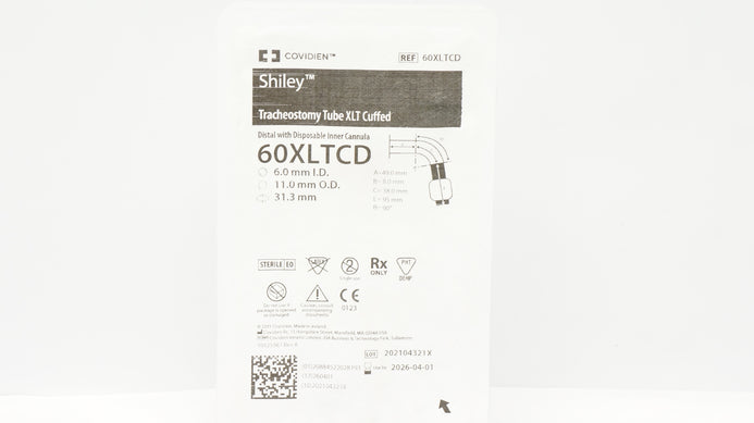 - Covidien 60XLTCD Shiley Tracheostomy Tube XLT Cuffed 6.0 ID x 11.0 OD x 31.3mm