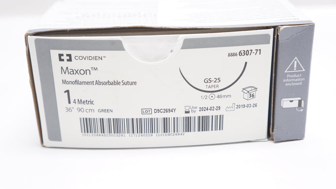- Covidien 6307-71 1 Maxon Monofilament GS-25 Taper 1/2 48mm 36in (x) - Box of 35