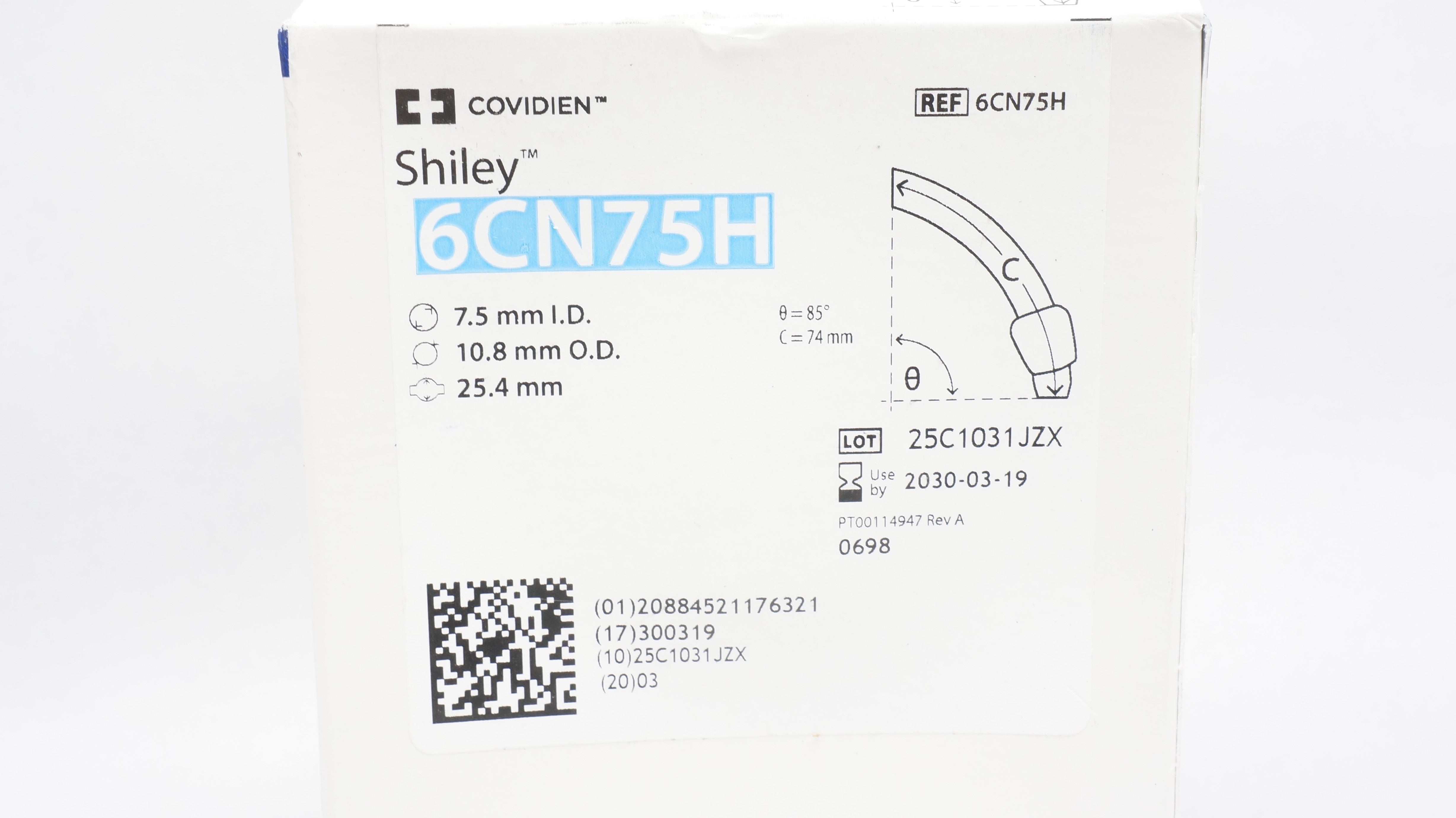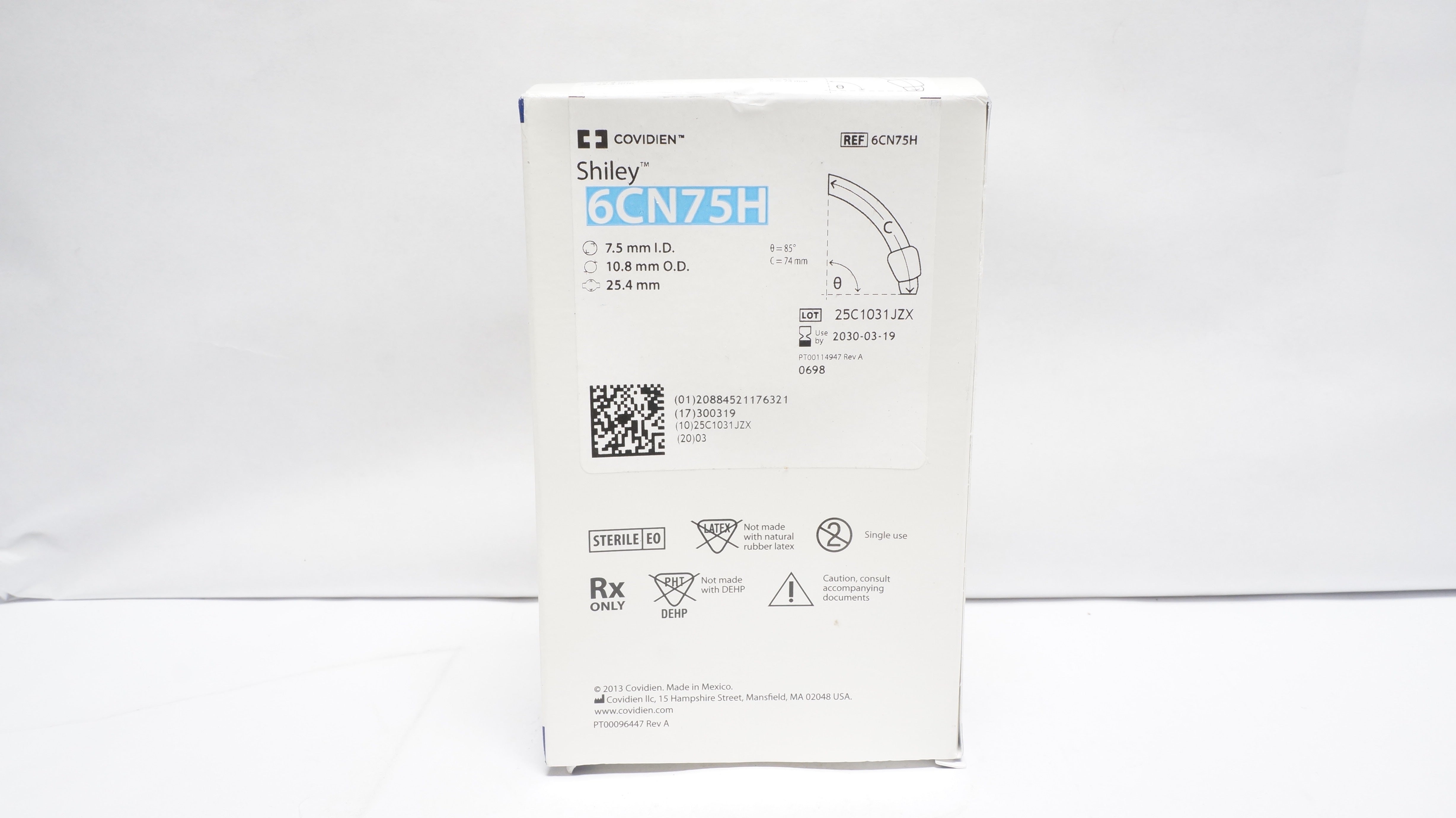 - Covidien 6CN75H Shiley Adult Flexible Tracheostomy Tube 7.5ID x 10.8OD x 25.4mm