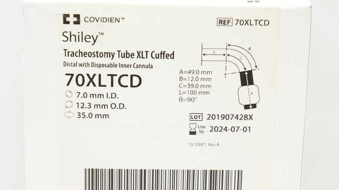 - Covidien 70XLTCD Shiley Tracheostomy Tube XLT Cuffed 7.0mm ID x 12.3mm OD (x)