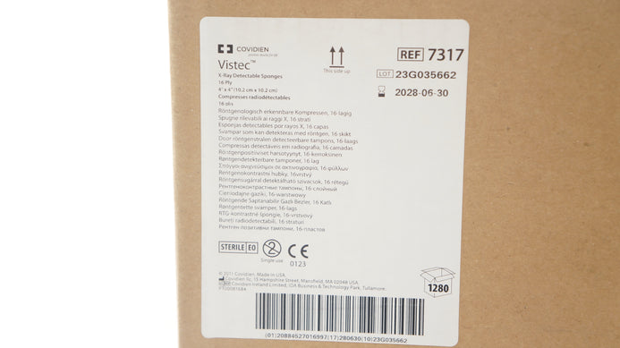 - Covidien 7317 Vistec X-Ray Detectable Sponges 16-Ply 4inch x 4inch -Case of 1280