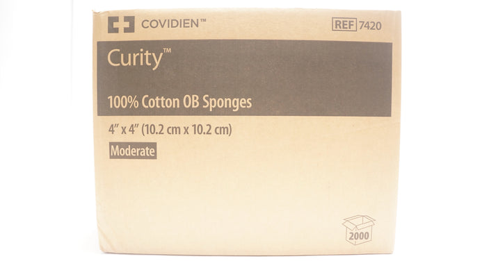- Covidien 7420 Curity 100% Cotton OB Sponges Moderate 4in x 4 in - Box of 2000