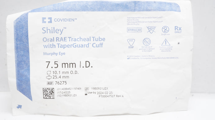- Covidien 76275 Shiley Oral RAE Tracheal Tube w/Cuff 7.5 ID x 10.1 OD x 25.4mm(x)
