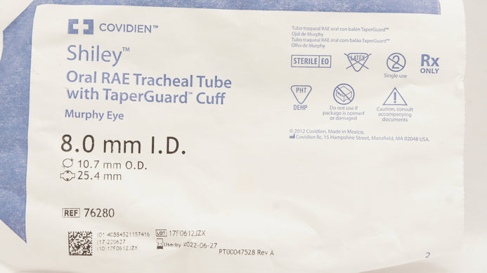 - Covidien 76280 Shiley Oral RAE Tracheal Tube 8.0mm ID 10.7 OD (x)