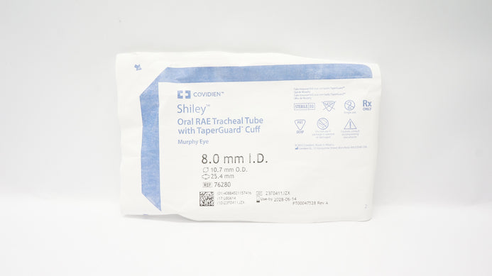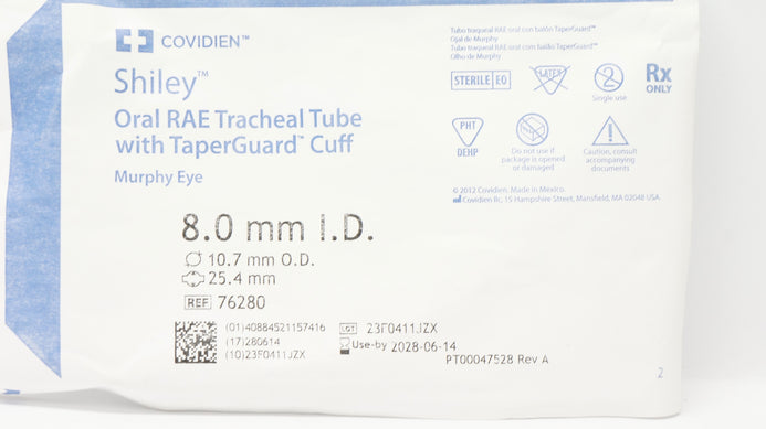 - Covidien 76280 Shiley Oral RAE Tracheal Tube W/Cuff 8.0 ID x 10.7 OD x 25.4mm