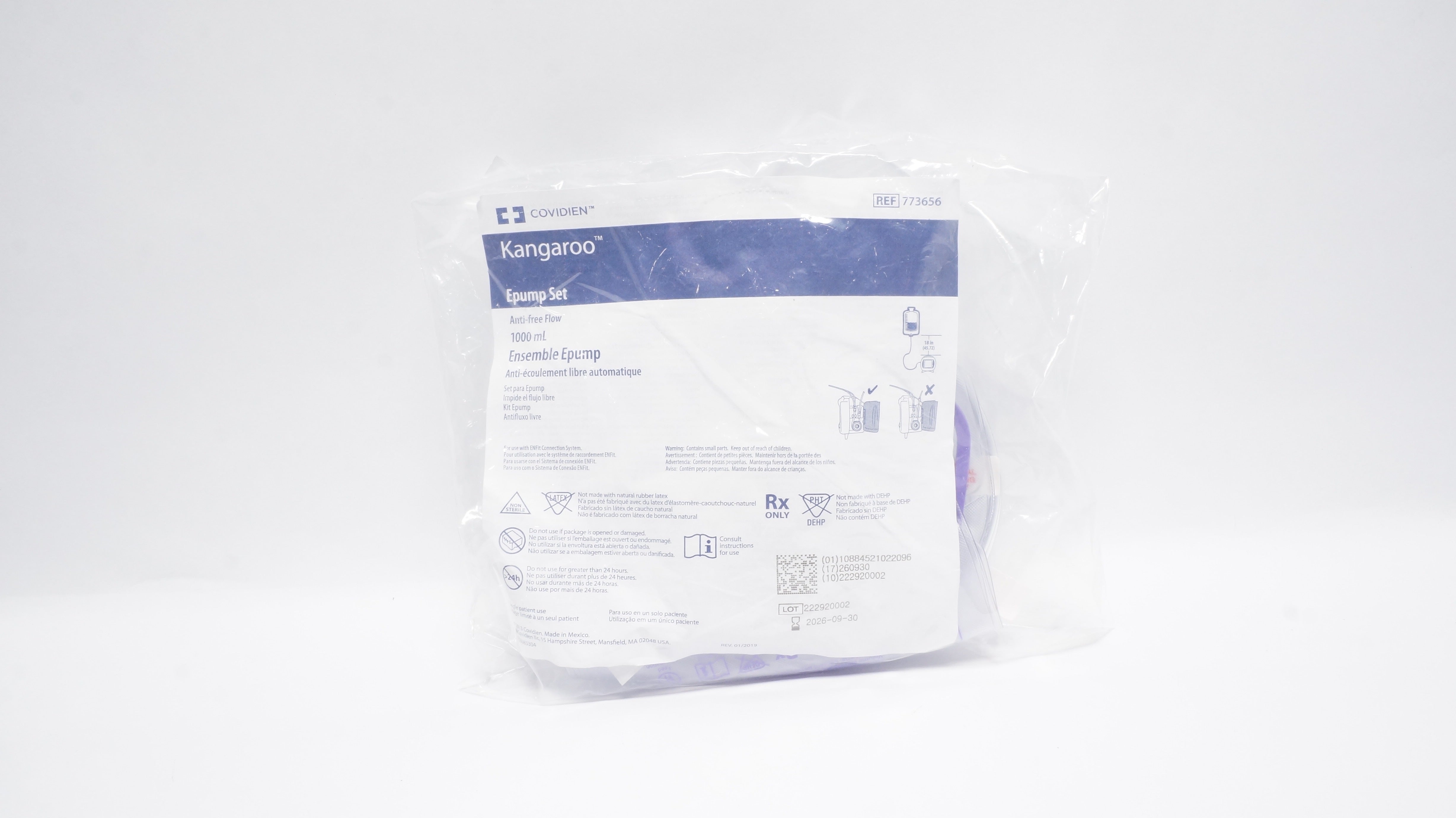 - Covidien 773656 Kangaroo Epump Set Anti-Free Flow 1000mL