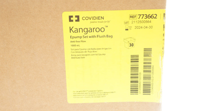 - Covidien 773662 Kangaroo Epump Set w/Flush Bag Anti-Free Flow 1000mL(x)-Box of 30