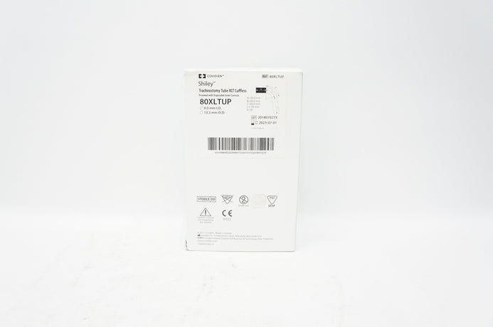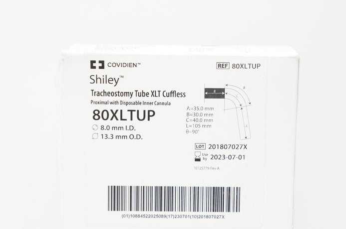 - Covidien 80XLTUP Shiley Tracheostomy Tube XLT Cuffless 8.0mm ID, 13.3mm OD