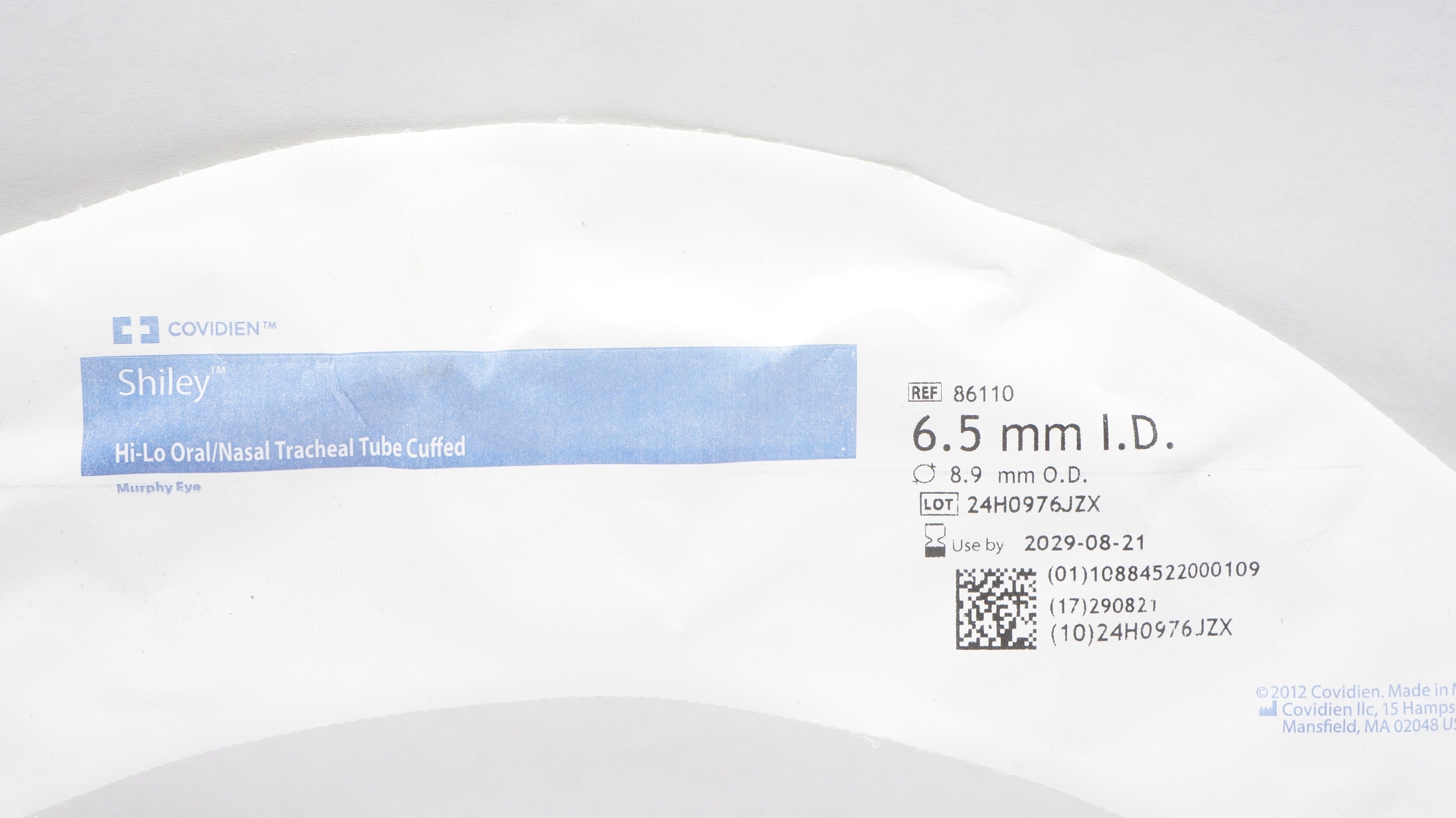 - Covidien 86110 Shiley Hi-Lo Oral/Nasal Tracheal Tube Cuffed 6.5mm ID x 8.9mm OD
