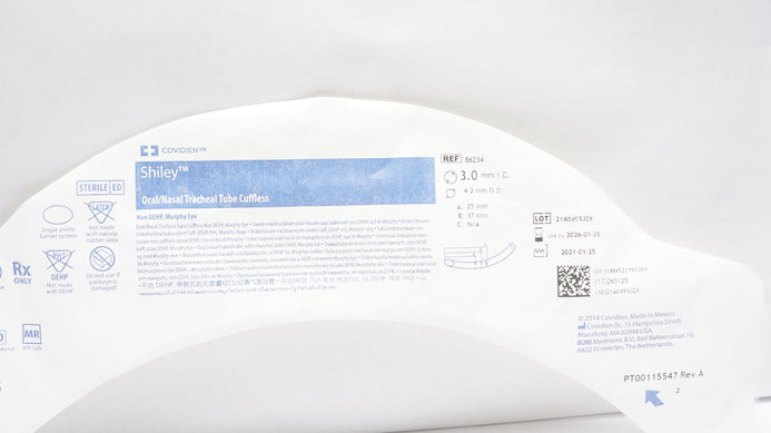 - Covidien 86234 Shiley Oral/Nasal Tracheal Tube Cuffless 3.0mm I.D. x 4.2mm O.D.