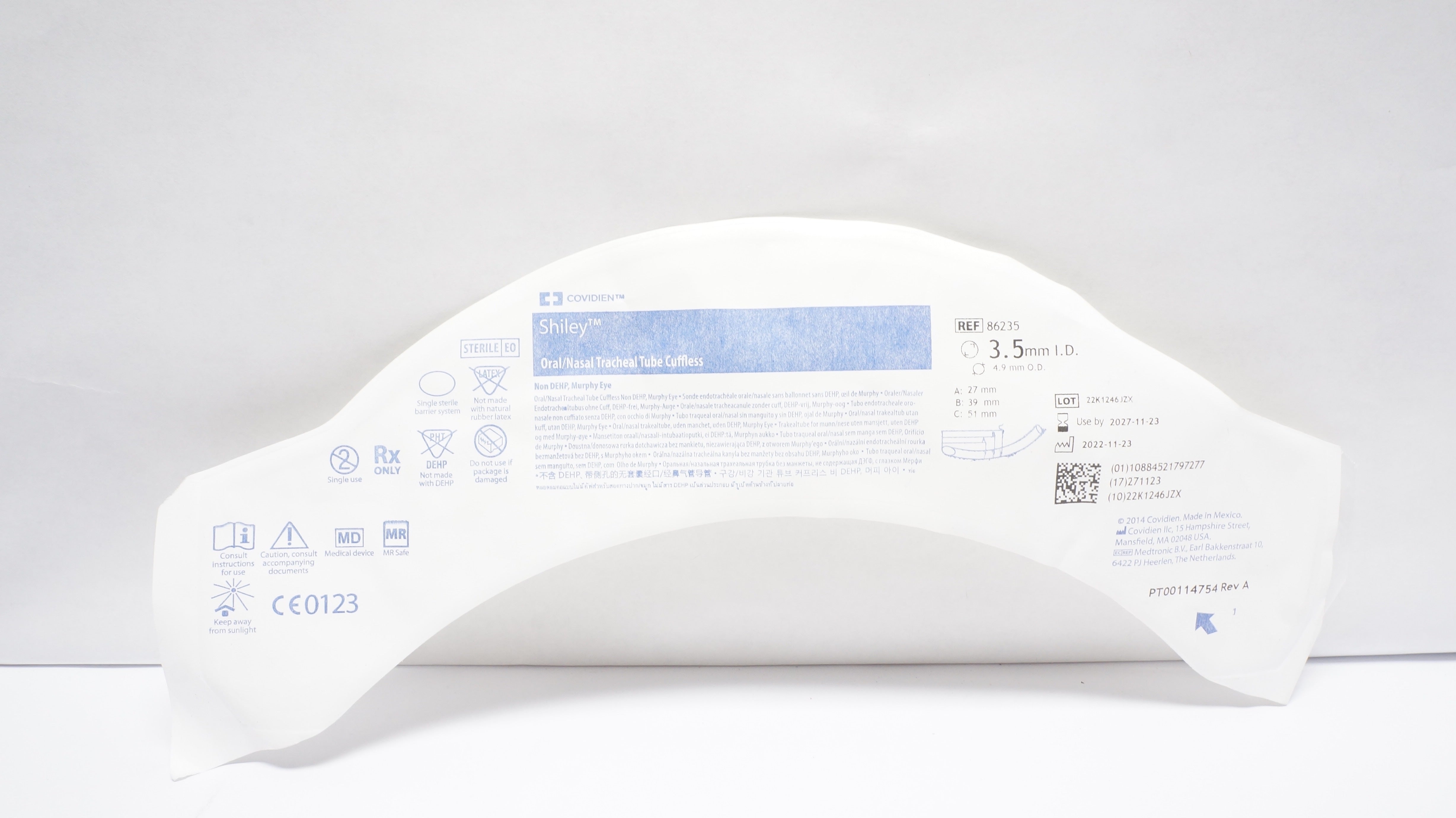 - Covidien 86235 Shiley Oral/Nasal Tracheal Tube Cuffless 3.5mm ID x 4.9mm OD