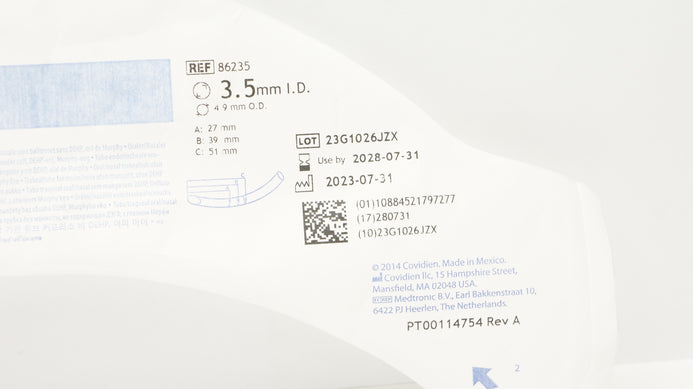 - Covidien 86235 Shiley Oral/Nasal Tracheal Tube Cuffless 3.5mm ID x 4.9mm OD