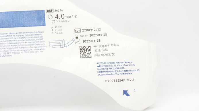 - Covidien 86236 Shiley Oral/Nasal Tracheal Tube Cuffless 4.0m ID x 5.5mm OD