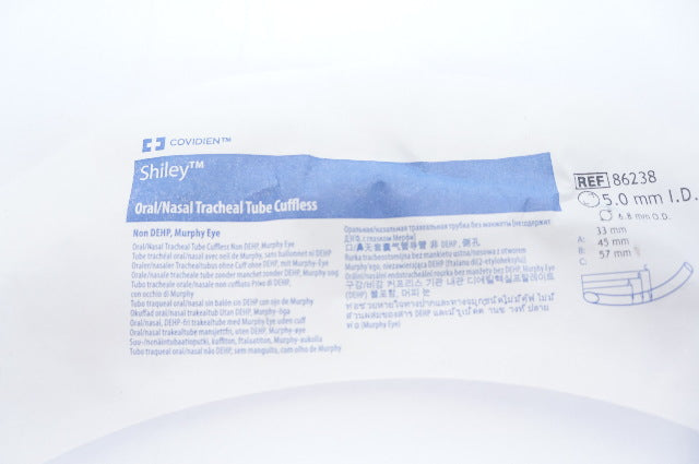 - Covidien 86238 Shiley Oral/Nasal Tracheal Tube Cuffless 5.0mm ID x 6.8mm OD (x)