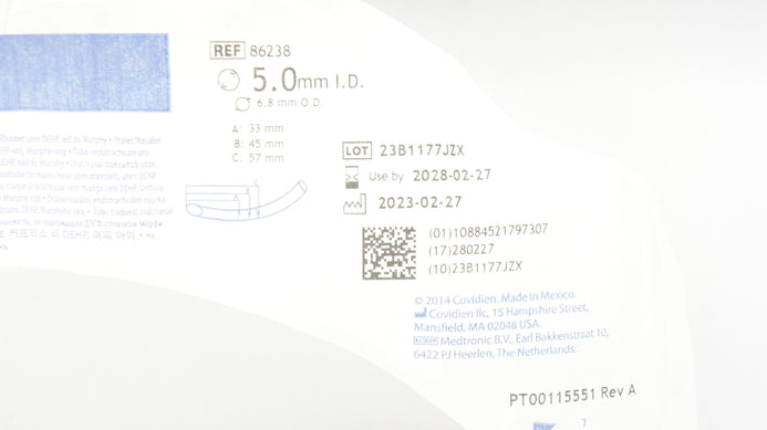 - Covidien 86238 Shiley Oral/Nasal Tracheal Tube Cuffless 5.0mm ID x 6.8mm OD