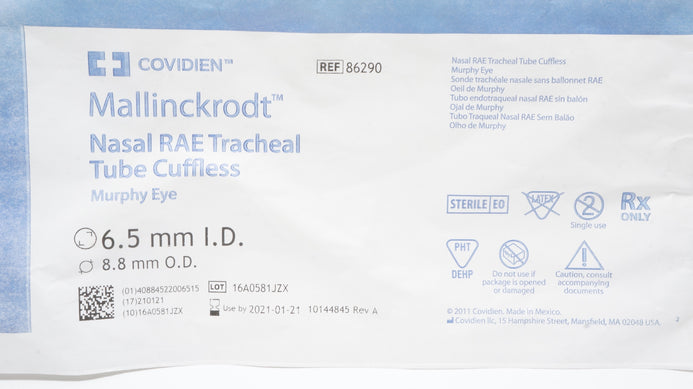 - Covidien 86290 Mallinckrodt Nasal RAE Tracheal Tube Cuffless 6.5ID x 8.8mm OD(x)