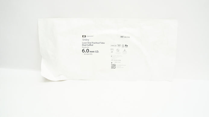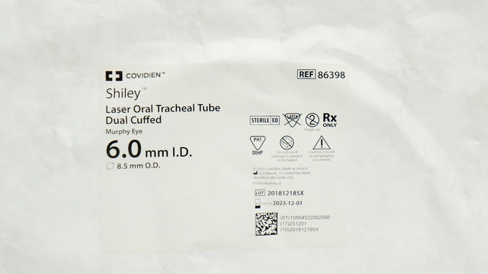 - Covidien 86398 SHiley Laser Oral Tracheal Tube Dual Cuffed 6.0mm I.D. 8.5mm O.D.