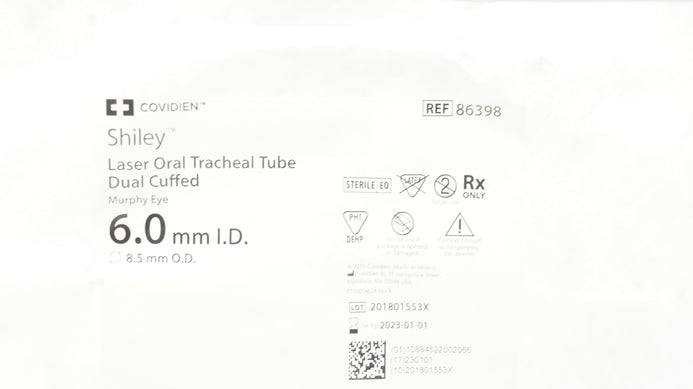 - Covidien 86398 Shiley Laser Oral Tracheal Tube Dual, Cuffed 6.0 ID x 8.5mm OD(x)