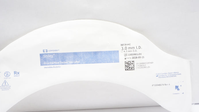 - Covidien 86442 Shiley Hi-Lo Oral/Nasal Tracheal Tube Cuffed 3.0mm ID x 4.3mm OD
