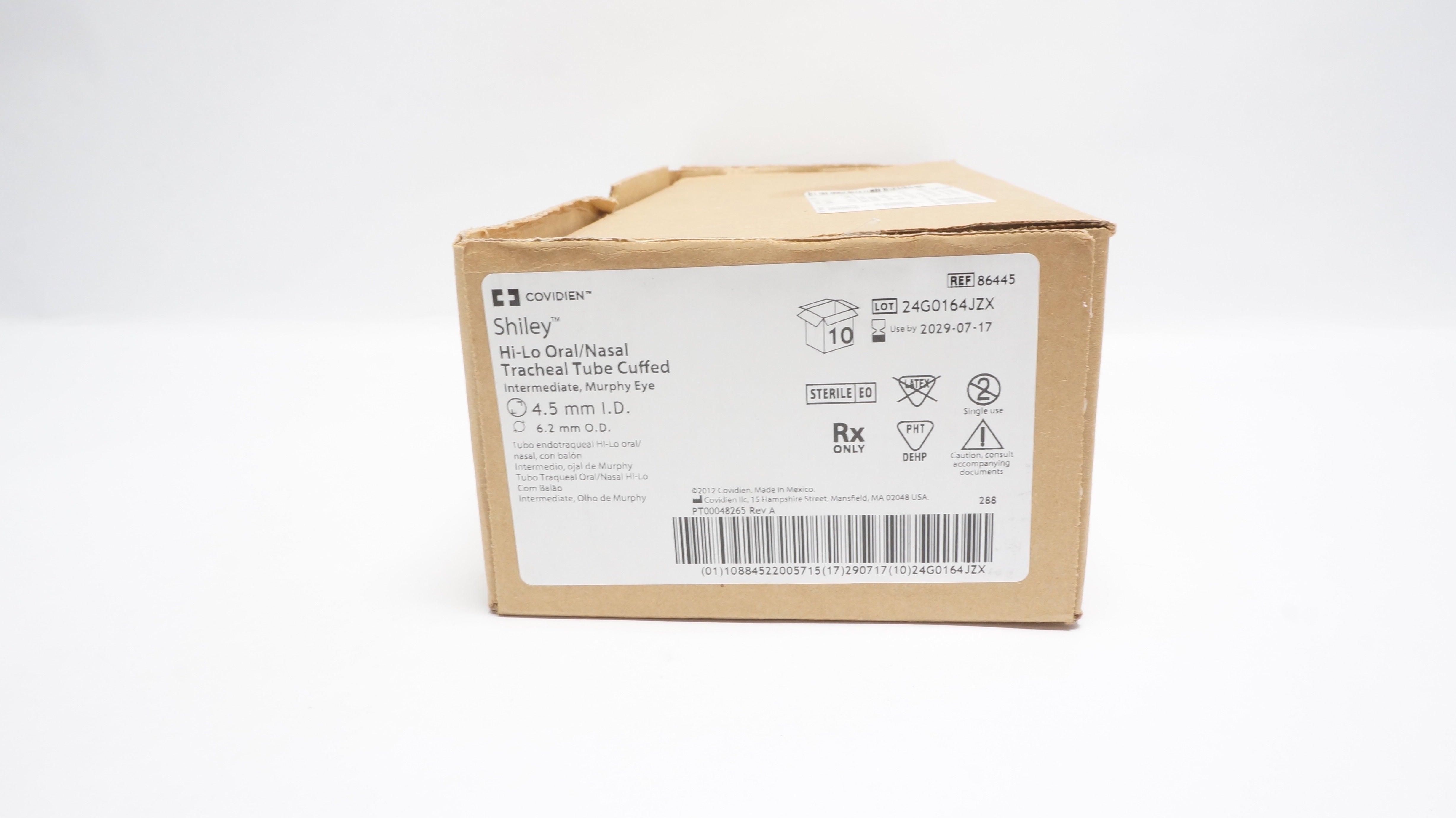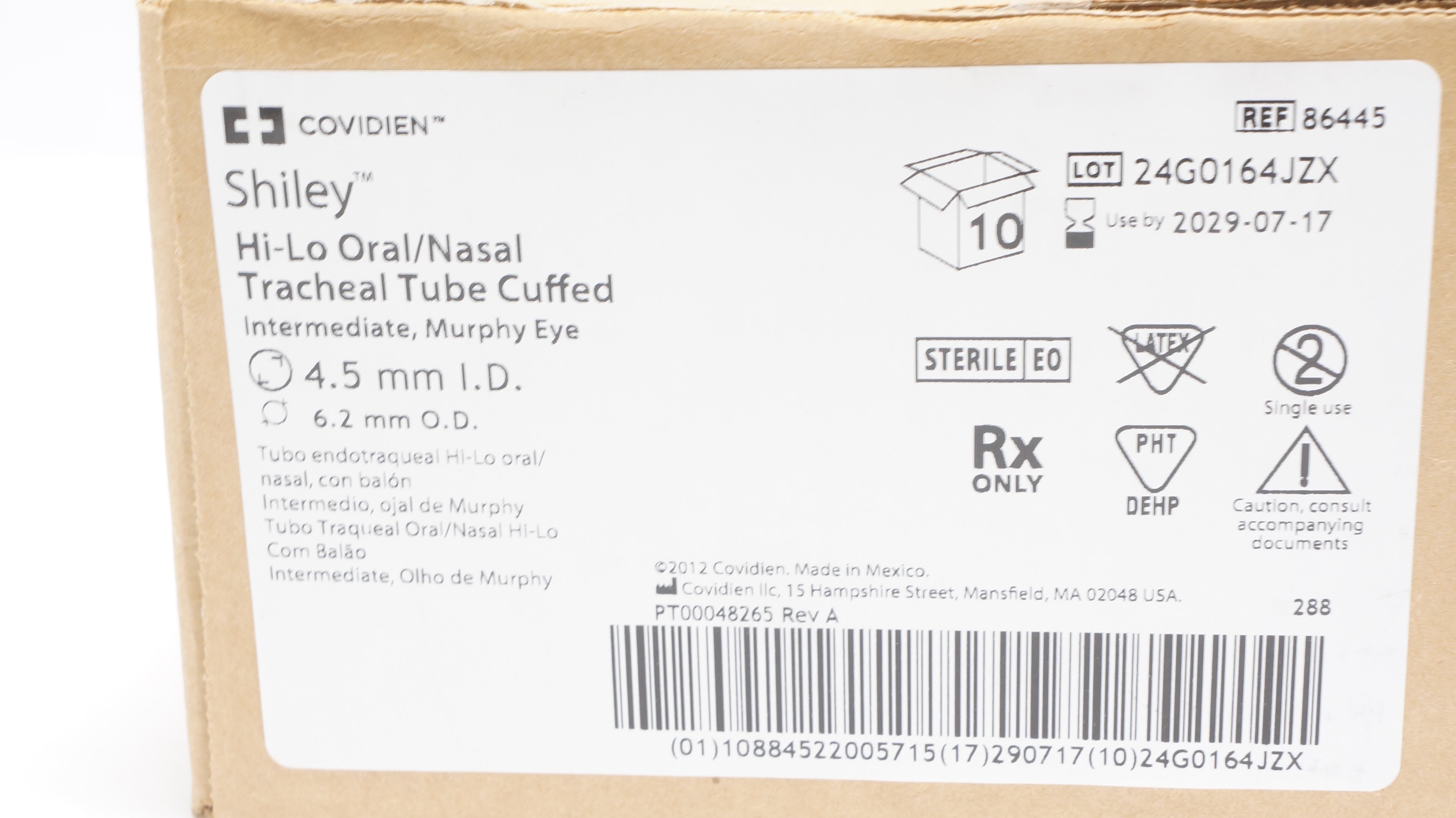 - Covidien 86445 Shiley Hi-Lo Oral/Nasal Tracheal Tube Cuffled 4.5x6.2mm-Case of10