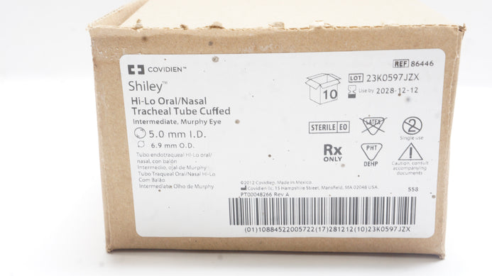 - Covidien 86446 Shiley Hi-Lo Oral/Nasal Tracheal Tube 5.0ID x 6.9mmOD - Box of 10
