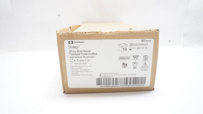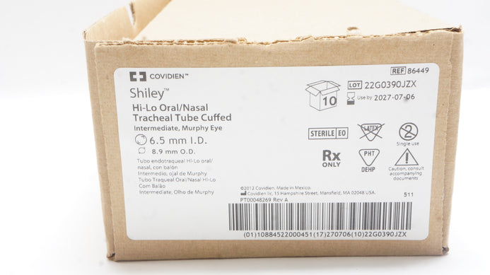 - Covidien 86449 Shiley Hi-Lo Oral/Nasal Tracheal Tube 6.5ID x 8.9mmOD - Box of 5