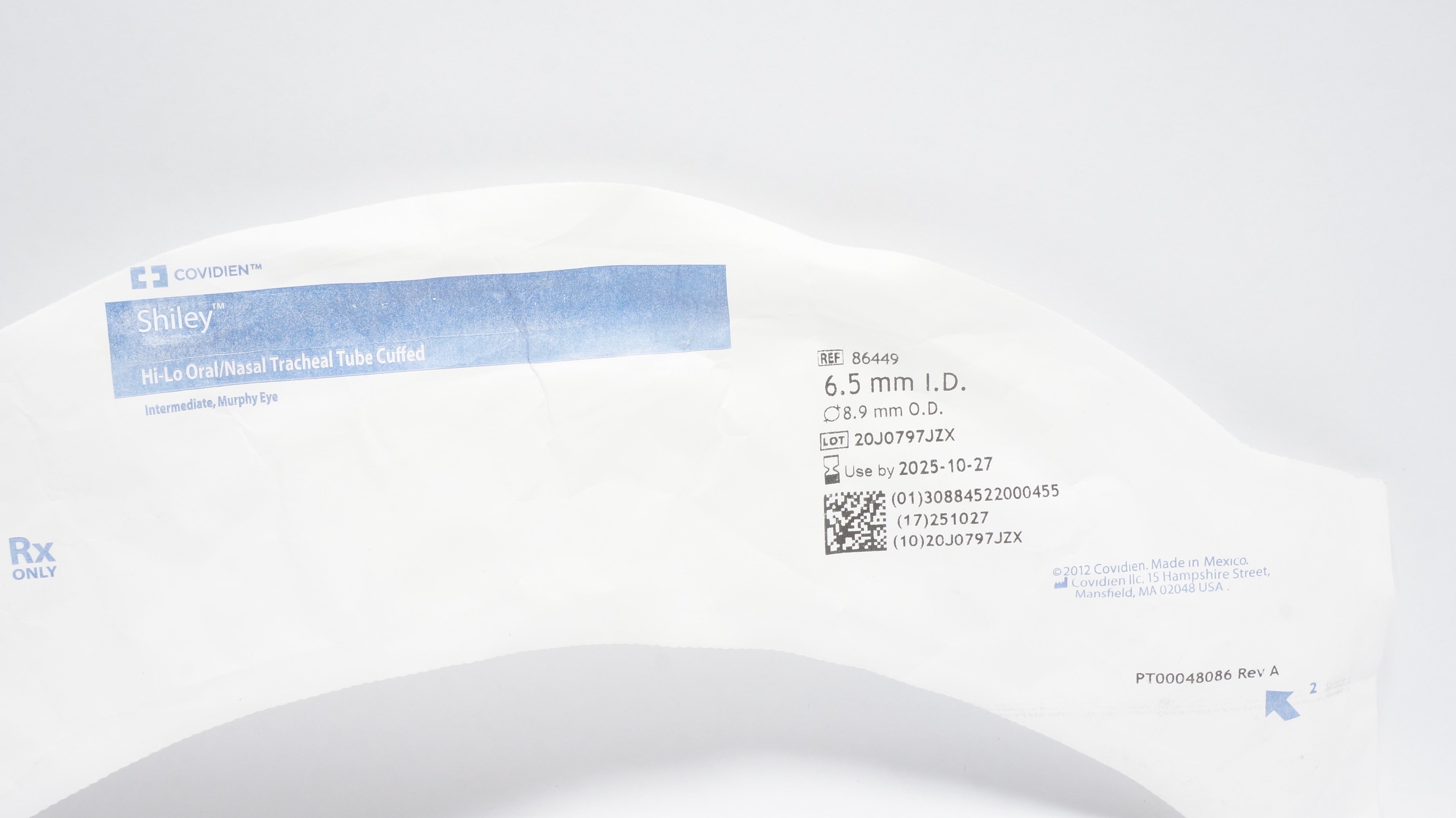 - Covidien 86449 Shiley Hi-Lo Oral/Nasal Tracheal Tube Cuffed 6.5mmID x 8.9mmOD(x)