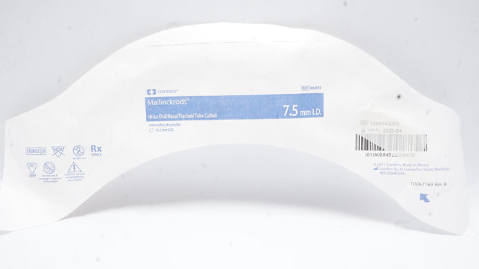 - Covidien 86451 Mallinckrodt Hi-Lo Oral/Nasal Tracheal Tube Cuffed 7.5x10.2mm (x)