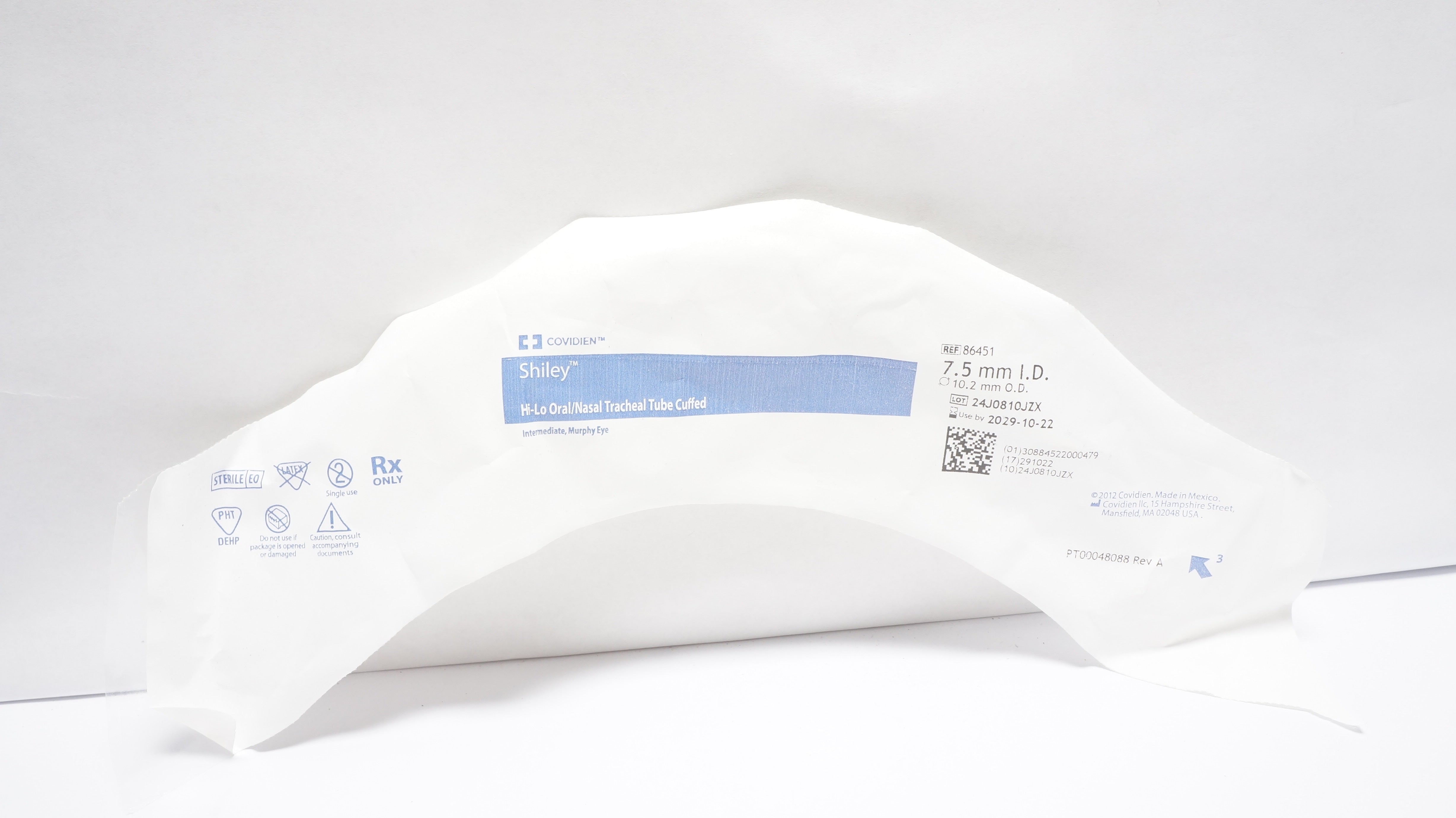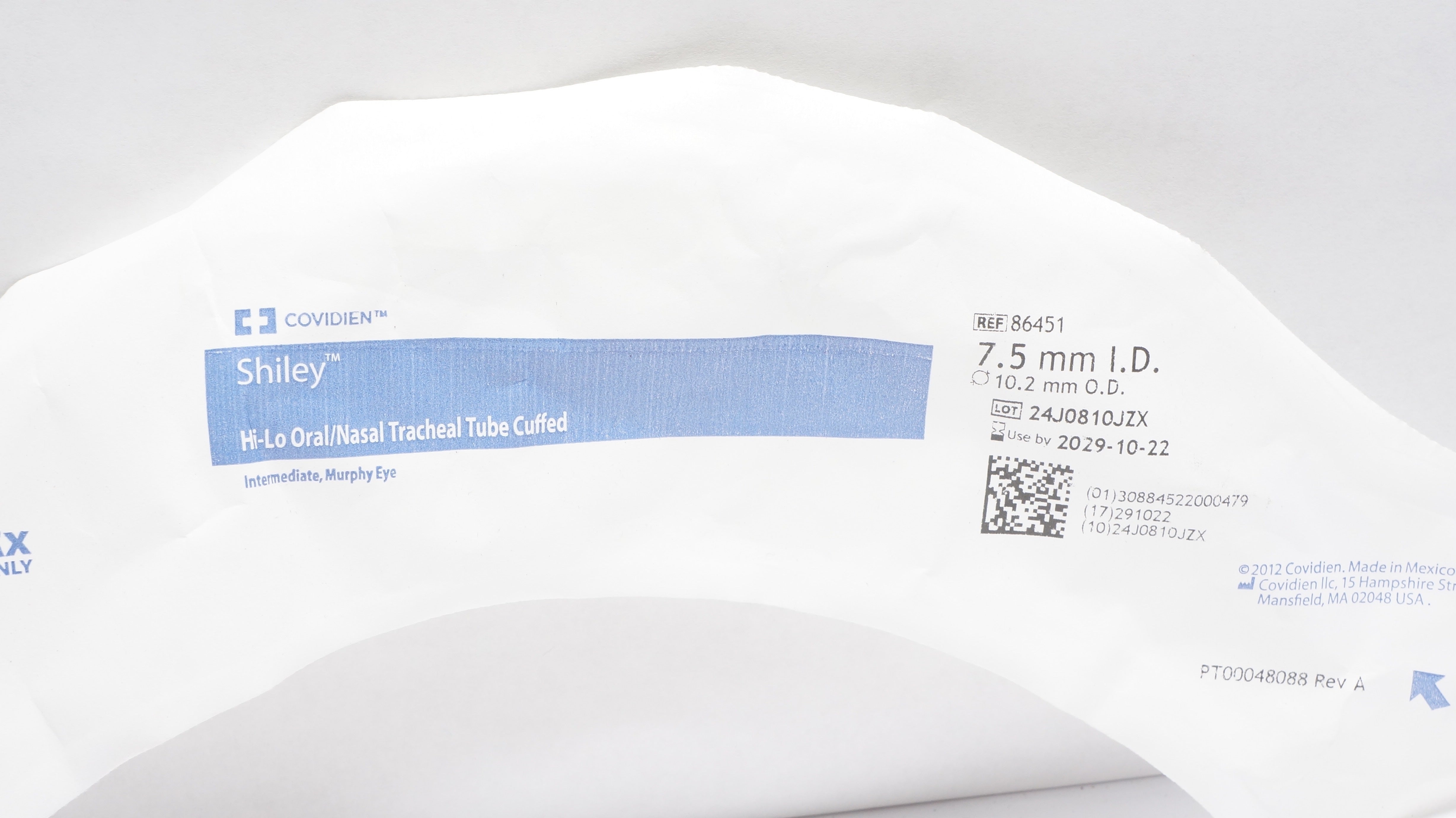 - Covidien 86451 Shiley Hi-Lo Oral/Nazal Tracheal Tube Cuffed 7.5mm ID x 10.2mm OD