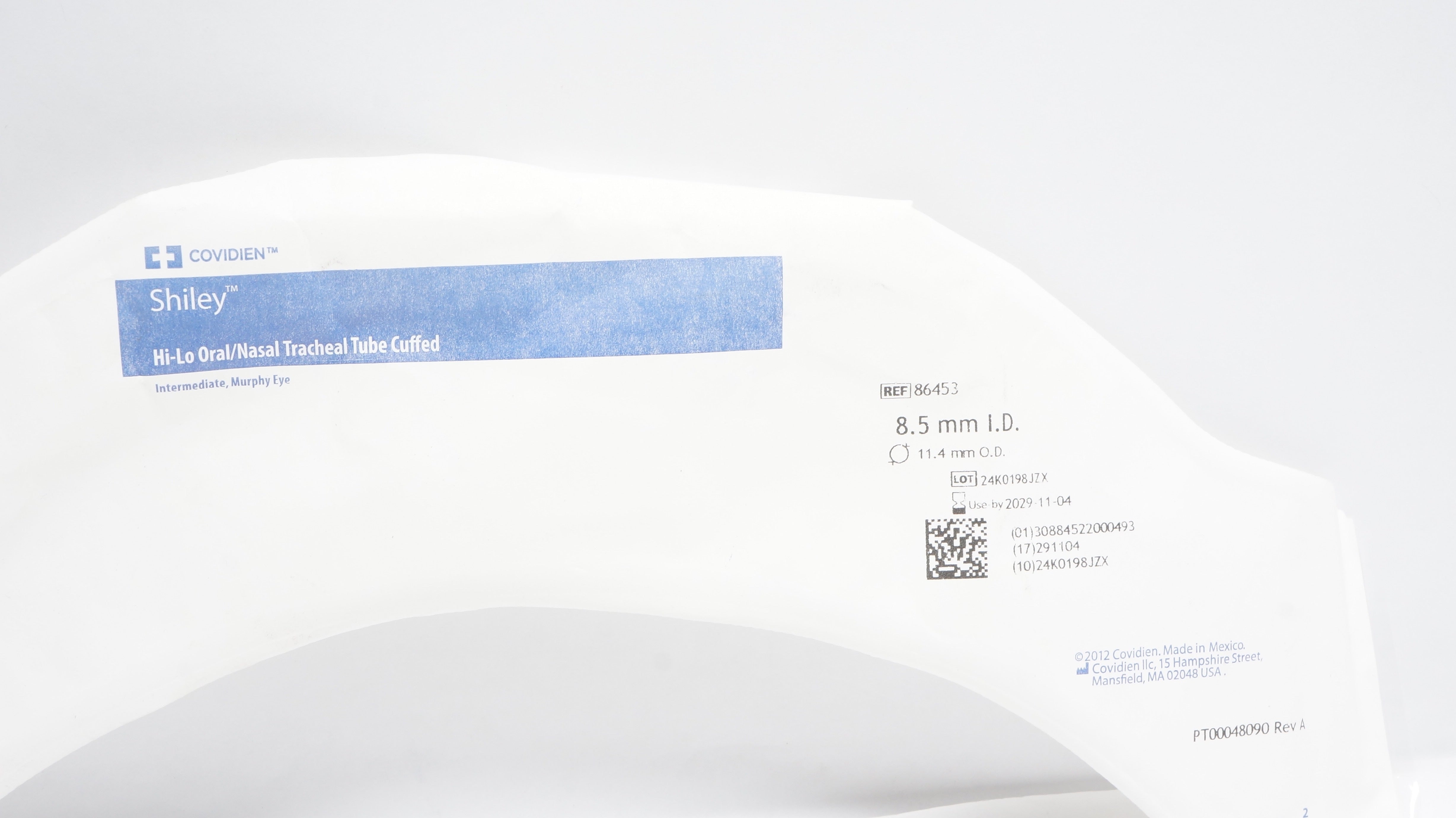 - Covidien 86453 Shiley Hi-Lo Oral/Nasal Tracheal Tube Cuffed 8.5mm ID x 11.4mm OD