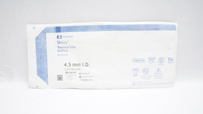 - Covidien 86545 Shiley Tracheal Tube Cuffless 4.5mm I.D. x 6.7mm O.D. (x)