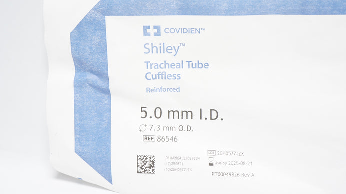 - Covidien 86546 Shiley Tracheal Tube Cuffless Reinforced 5.0 I.D. x 7.3mm O.D.(x)