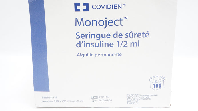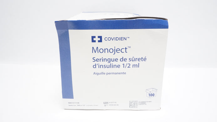 - Covidien 8881511136 1/2ml Insulin Safety Syringe Permanent Needle - Box of 100