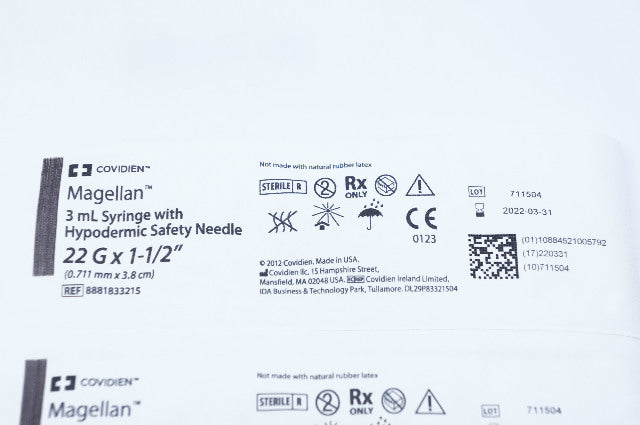 - Covidien 8881833215 Magellan 3mL Syringe with Hypodermic Safety Ndle~ Pack of 50