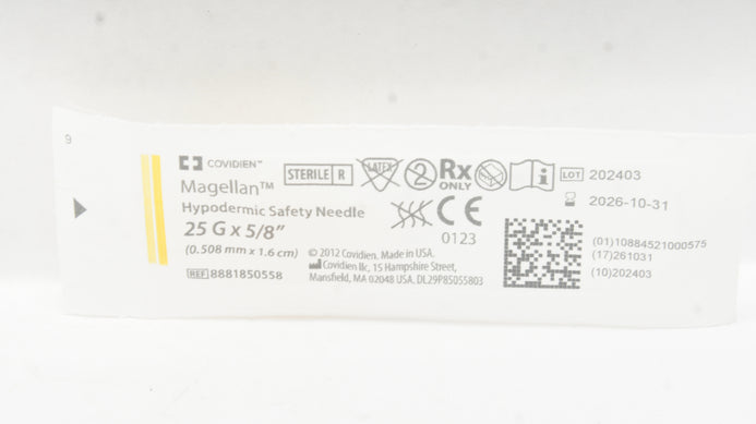 - Covidien 8881850558 Magellan Hypodermic Safety Ndle. 25G x 5/8inch